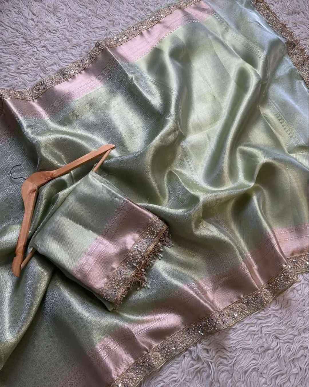 beautiful exclusive kanjivaram silk saree with beautiful primium lace attached blouse also lace work✨