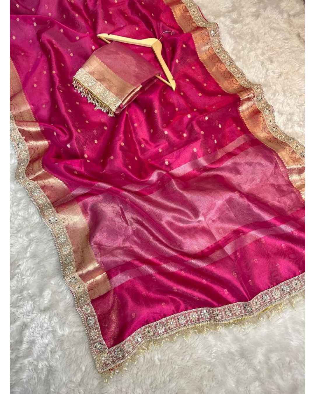 Maharani Banarasi tissue fabric silk saree with beautiful buti design and colour combination with primium lace work and jhalar ✨fancy pallu and blouse ✨