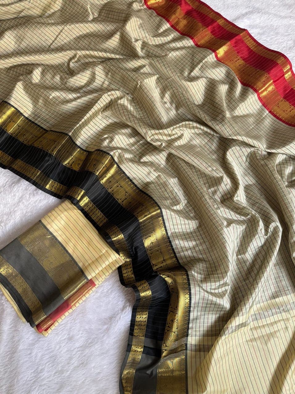 *Semi Kanjivaram Banarasi Checks & Ganga Januna Zari Border Sarees*